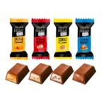 - Skład: Czekolada mleczna i deserowa, nadzienia (m.in. mleczne, orzechowe, karmelowe), masło kakaowe, mleko w proszku, pasta orzechowa, aromaty naturalne. Może zawierać orzechy, migdały, soję.