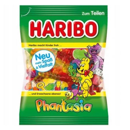 HARIBO Phantasia 340g to prawdziwa uczta dla wyobraźni – kolorowe, owocowe żelki w przeróżnych kształtach: od dinozaurów, przez smoki, po urocze misie.