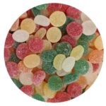 - Skład: Cukier, syrop glukozowy, żelatyna, koncentraty owocowe (jabłko, pomarańcza, cytryna, czarna porzeczka), aromaty, barwniki. Może zawierać śladowe ilości mleka i orzechów.